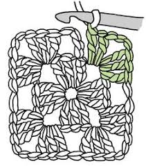 Take the next square which will sit to the right of the first square you have just completed the border for and start crocheting around the side, top and then join the third edge to the first square along one side. This leaves the bottom edge to crochet before you begin again. Work like this to the end of this row and then lay out your second row making sure all squares are the correct way up. Keep repeating the above until all the squares are joined.